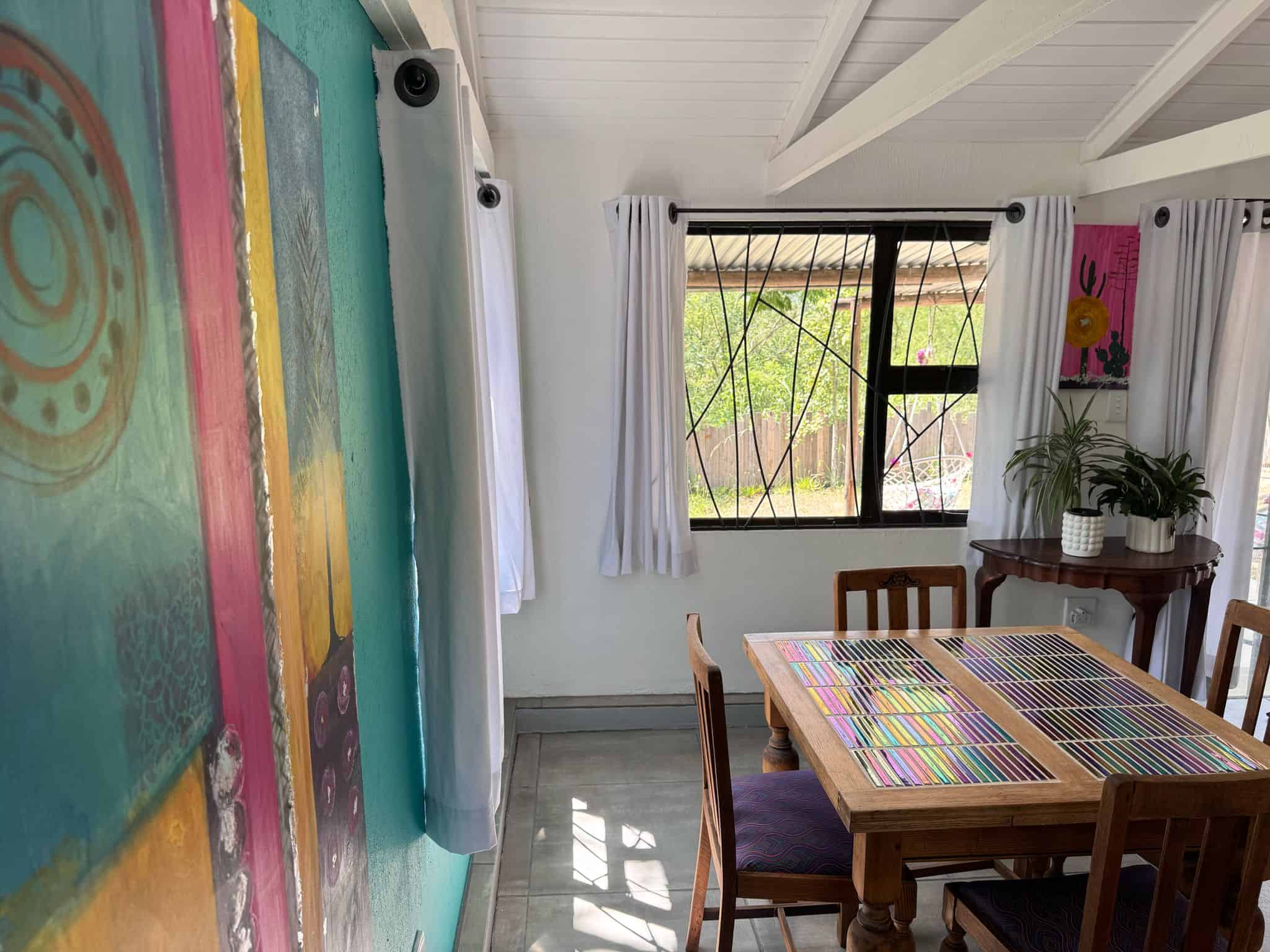 Escape to The Boho Bush Cabin, a private and tranquil one-bedroom cottage nestled beneath a majestic Maroela tree in the heart of the bushveld. Designed as a cozy artist’s hideaway, this bright and boho-inspired space offers the perfect blend of comfort and creativity.